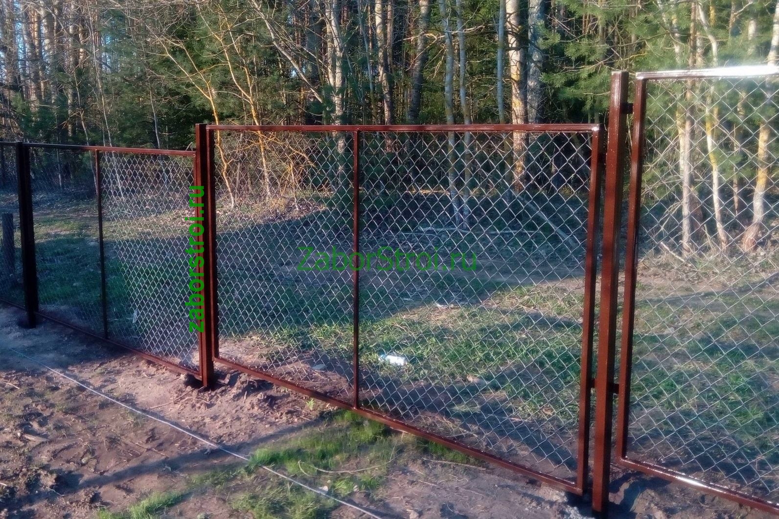 Заборы из сетки рабица в секциях из профиля 20 соток